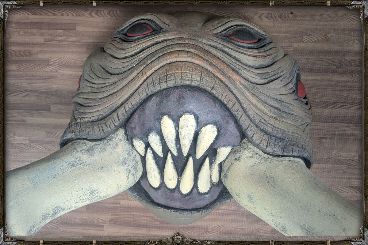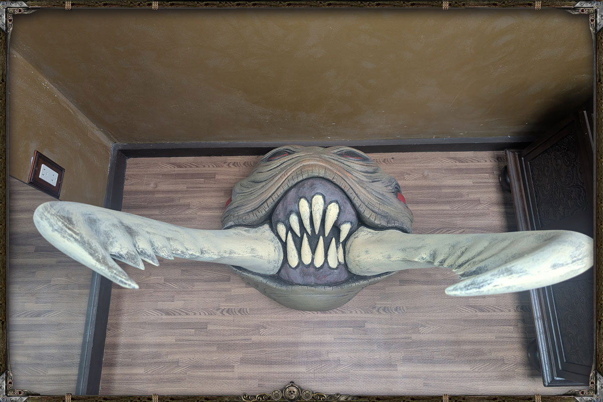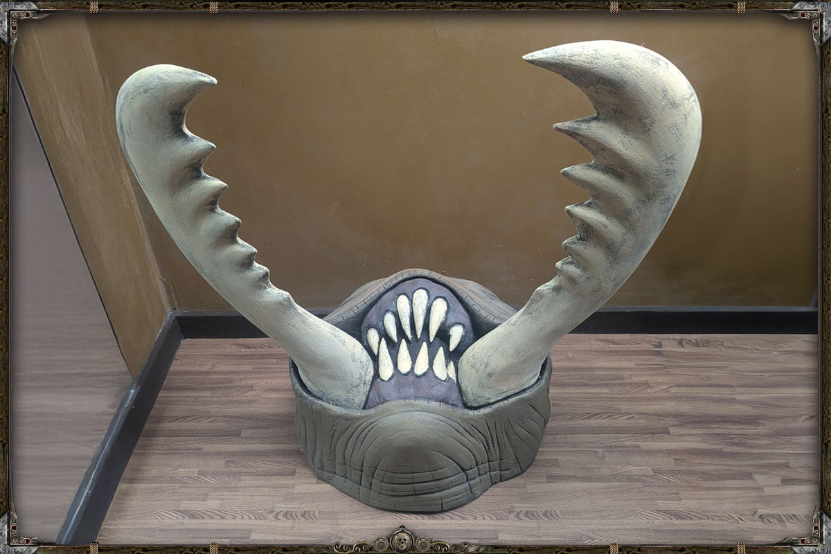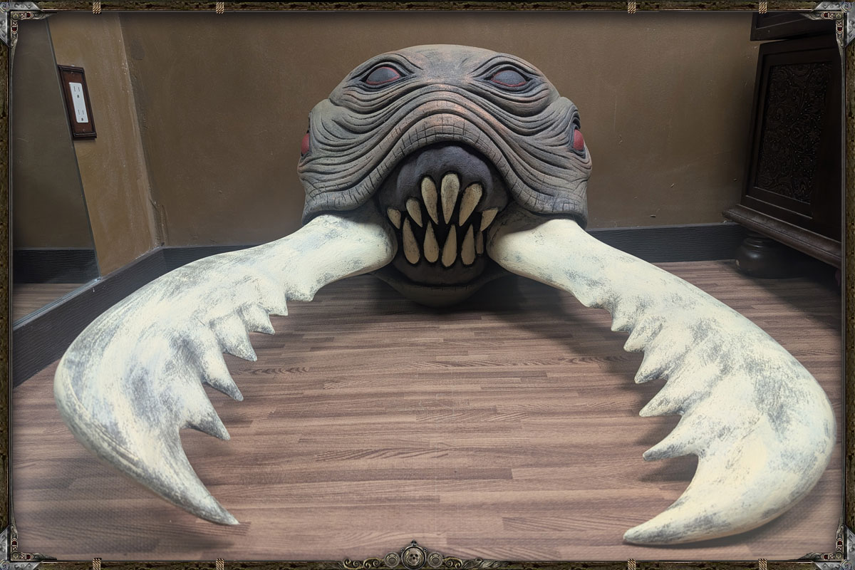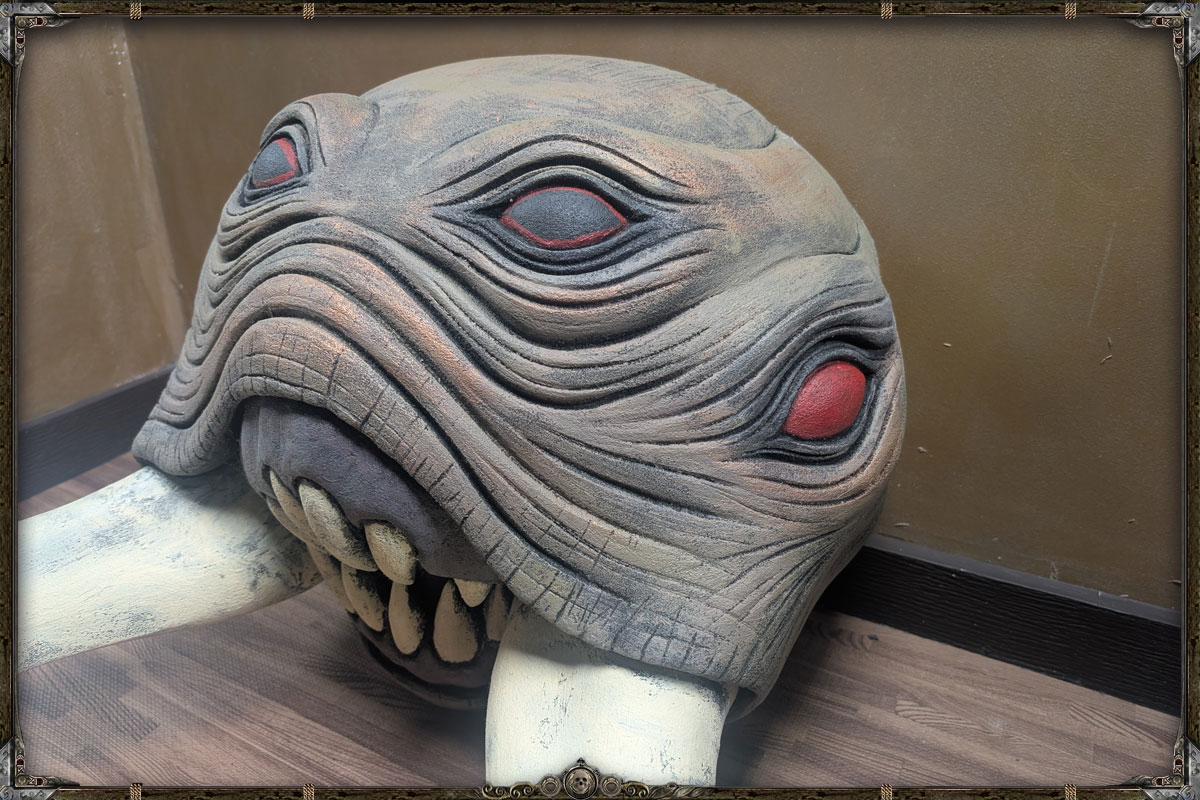 This extraordinary trophy head was painstakingly sculpted, carved, and detailed over the course of several months. A true labor of passion by an artisan who understands the monstrous anatomy and iconic menace of one of Dungeons & Dragons’ most unforgettable creatures. Every ridge, mandible, and chitin plate has been custom shaped by hand, then brought to life with a rich, multi‑layered paint finish that gives the piece an uncanny, almost living presence.